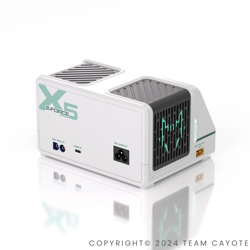 2-Force X5 – Engineered to Win Das 2-Force X5 ist ein Dual-Channel Smart Charger für ambitionierte RC-Racer. Entwickelt für maximale Leistung, hohe Ladeeffizienz und vielseitige Einsatzmöglichkeiten – vom Rennbetrieb bis zur Werkstatt.