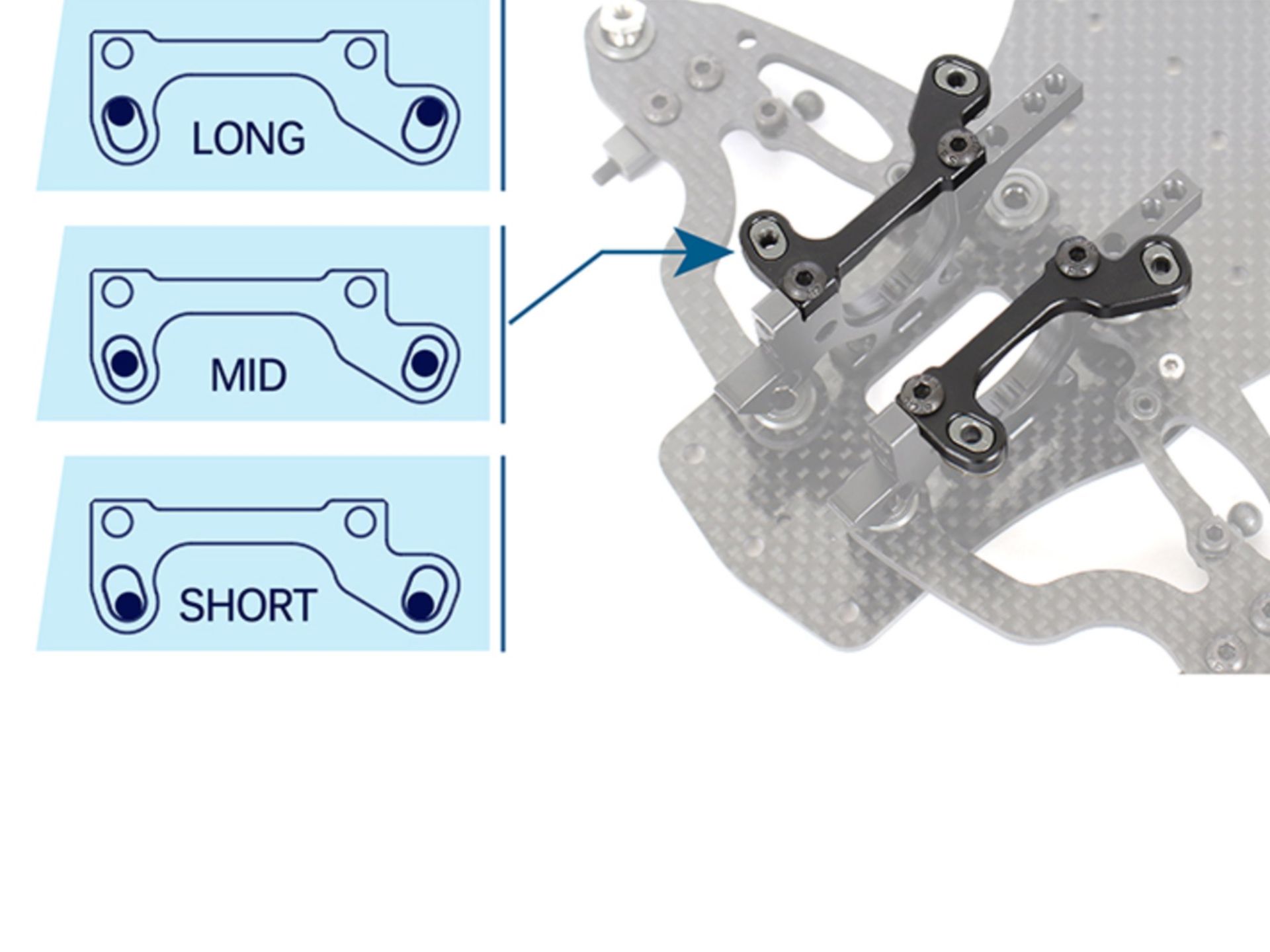 Drei Längenoptionen – längere Arme für sanftere Reaktion, kürzere für mehr Grip beim Einlenken.