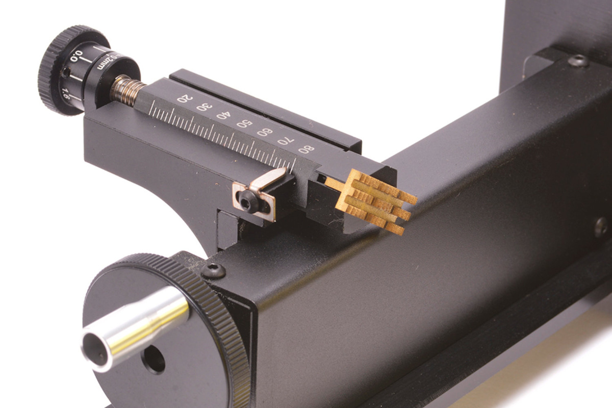 (Das Schneidwerkzeug kann von Hand bewegt werden, anstatt das Rad zu drehen)