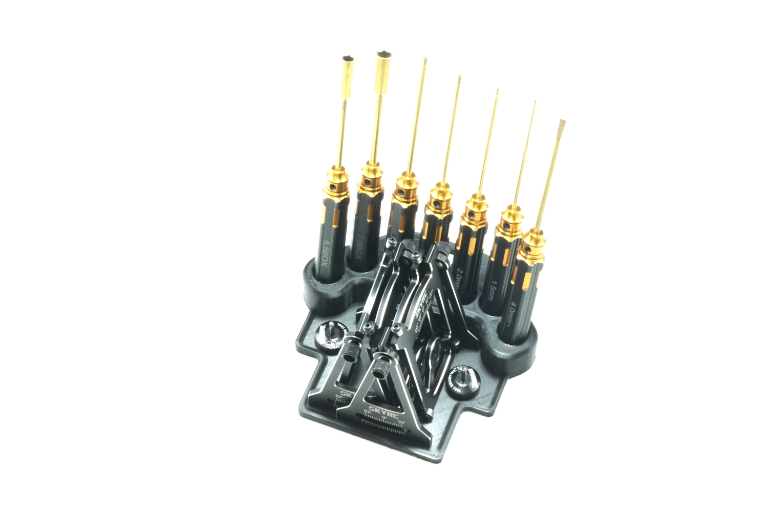 Due to its design, the tool holder is compatible with most common RC tools (Hudy, Arrowmax, TFL)