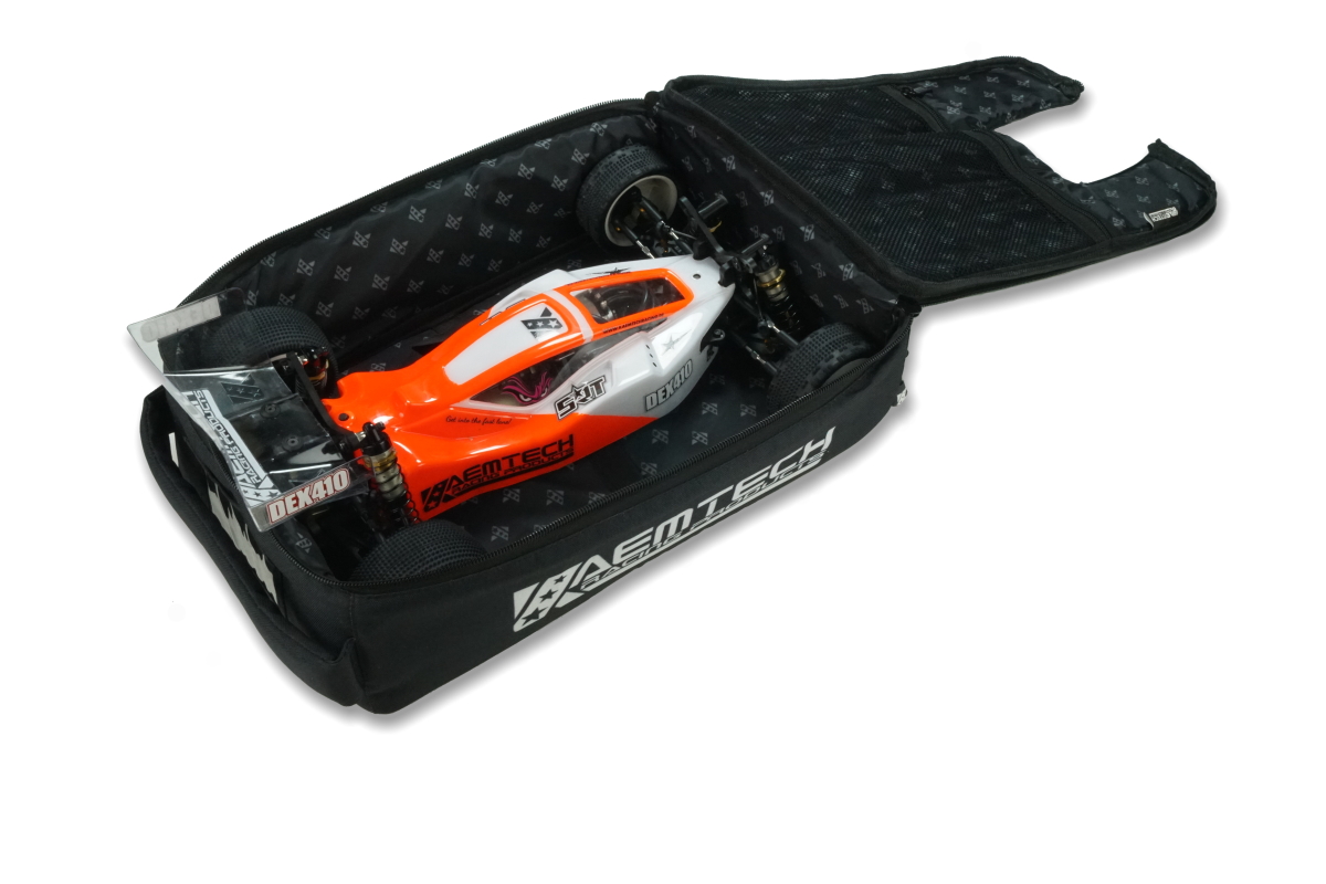 Mit den Taschen von KAEMTECH RACING PRODUCTS für den RC-Bereich könnt ihr euer wertvolles Equipment sauber und sicher aufbewahren! Das weiche Inlay-Material und der breite Tragegriff sorgen für einen sicheren Transport. Das Back 2 Back-Klett System ist eine neue Möglichkeit mehrere Taschen zu verbinden, und damit den Transport zu erleichtern. Die RC-Car Taschen verfügen über eine innenliegende Netztasche für Zubehör und Kleinteile.