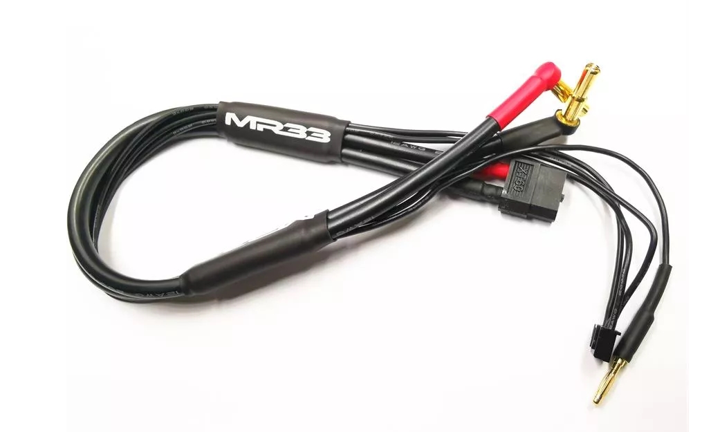 Dieses in schwarz gehaltene Ladekabel von MR33 ist 30cm lang und hat einen XT60 Stecker zum Einstecken in das Ladegerät. Am anderen Ende befinden sich zum Laden der Akkus 2 praktische Goldstecker, welche sowohl in 4mm als auch in 5mm Buchsen eingesteckt werden können. Das XH-Balancer Kabel ist fertig in das Ladekabel mit eingearbeitet und kommt wie gewohnt zum Einsatz!