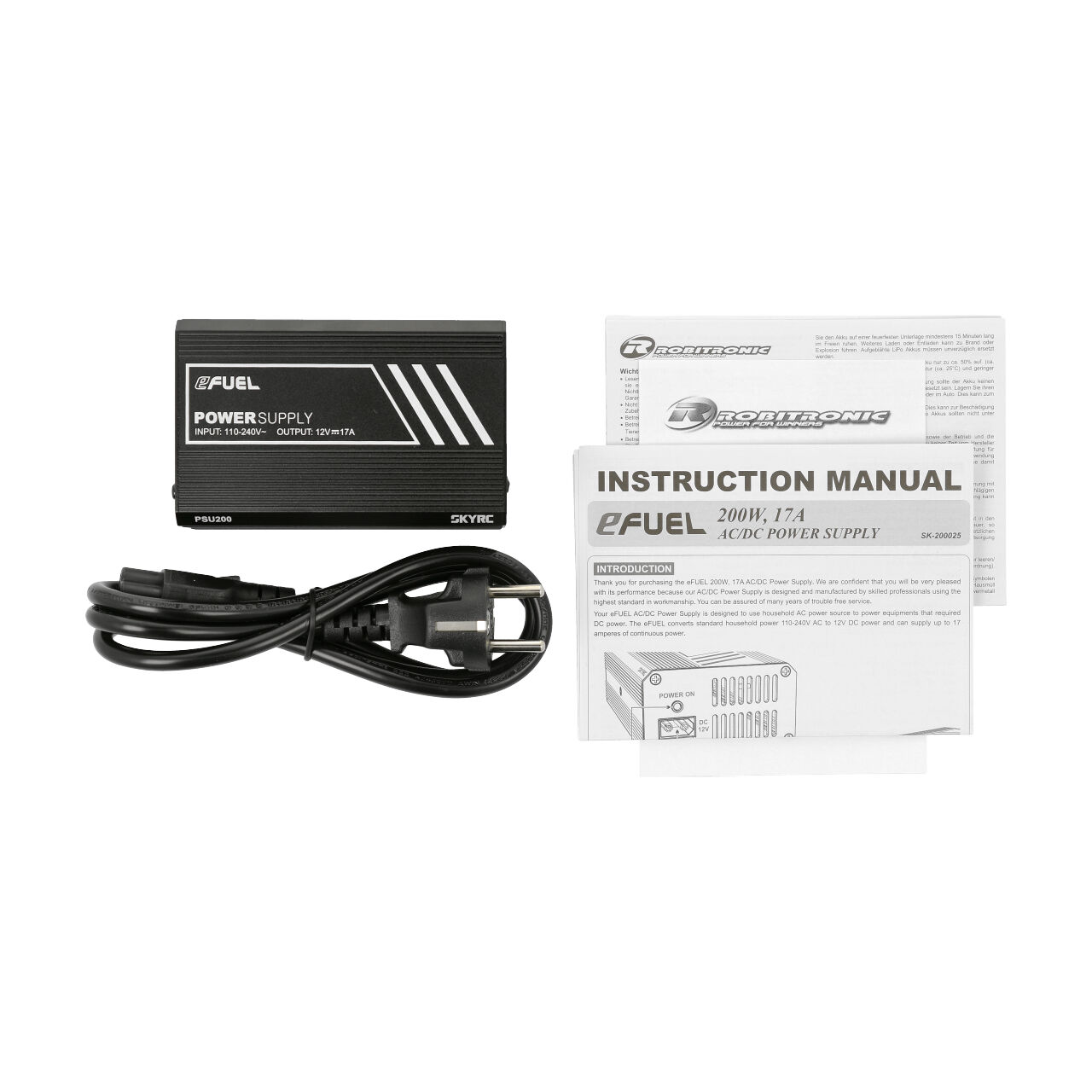 Verwandeln Sie mit dem äußerst kompakten eFuel 200W den Strom aus der Steckdose in effizienten und starken DC-Strom mit bis zu 12V und 17A. Einem Gerät entwickelt von hoch qualifizierten Technikern und versehen mit diversen Sicherheitsmechanismen. So ist dieses Netzteil beispielsweise mit einem Kurzschlussschutz und einem Überspannungssschutz ausgestattet. Dank des XT60-Anschlusses wird außerdem verhindert, dass die Polarität aus Versehen vertauscht wird oder der Stecker herausrutschen kann.