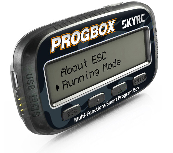Um den Fahrtenregler präzise und ausführlich zu programmieren, empfehlen wir die Verbindung zum PC, dies ist aber nicht immer möglich und aus diesem Grund gibt es die Program Box. Mit der Box lassen sich alle Parameter einfach, schnell und übersichtlich einstellen, dazu muss einfach die Box mit dem Regler verbunden werden.
