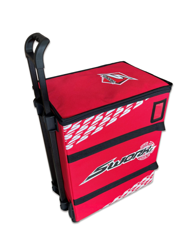 Die neue SWORKz Racing Trolley-Tasche hat ein neues Design-Logo und ist aus hochwertigen Materialien hergestellt. sie behält die gleiche Ausstattung mit 3 Schubladen (1/10 Touring-Größe) aus PP-Material bei, während das Außenmaterial Tauchanzugsmaterial hergestellt wird.