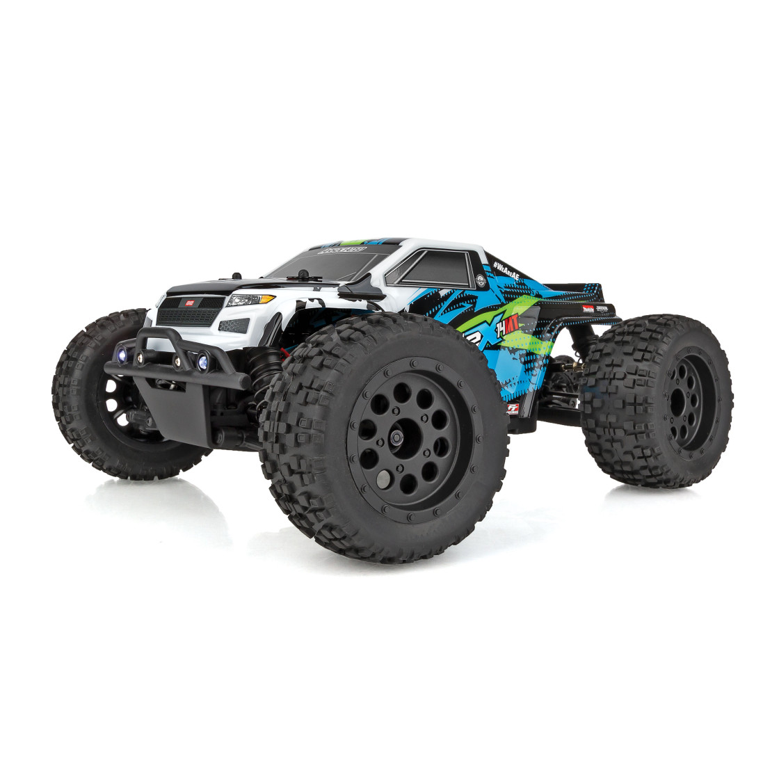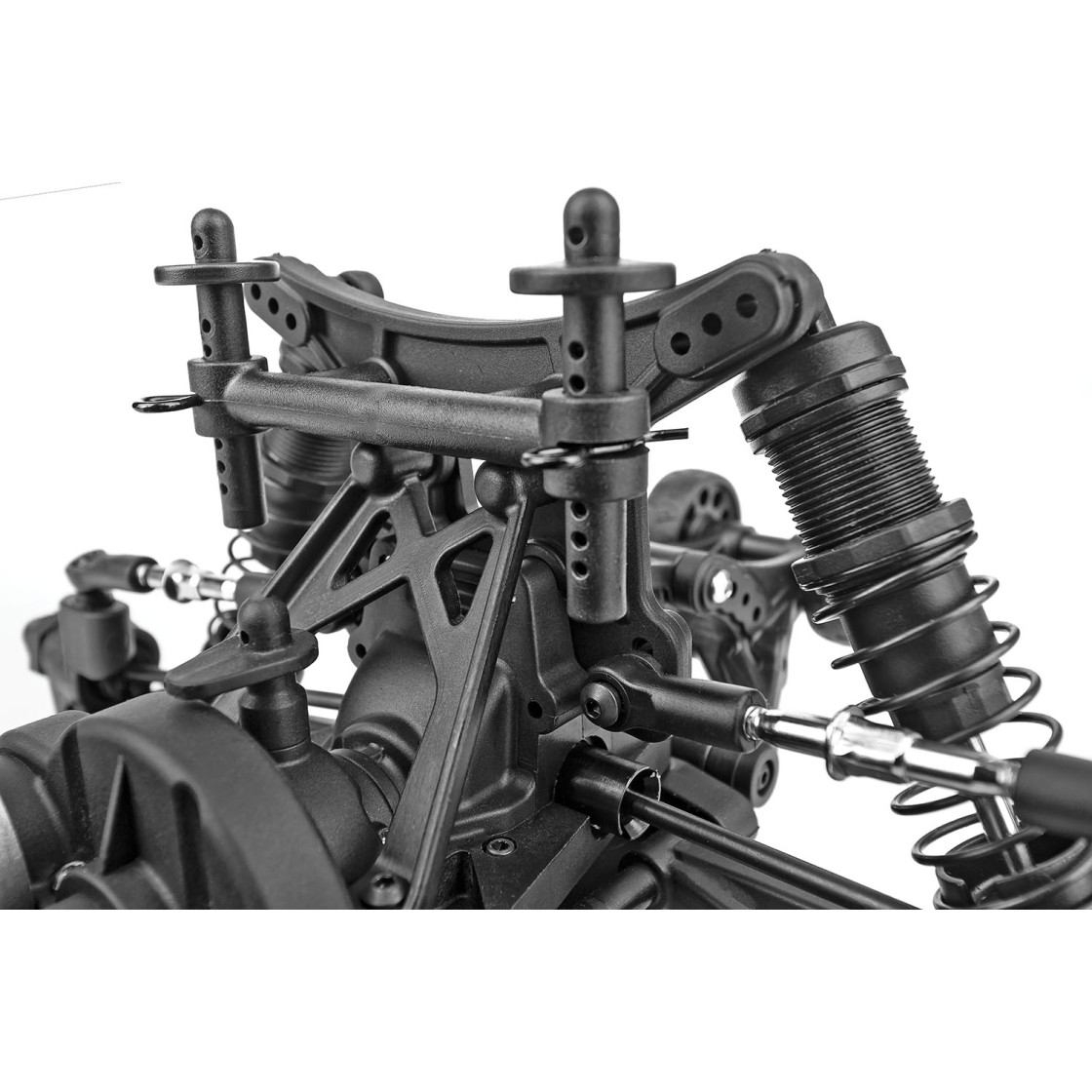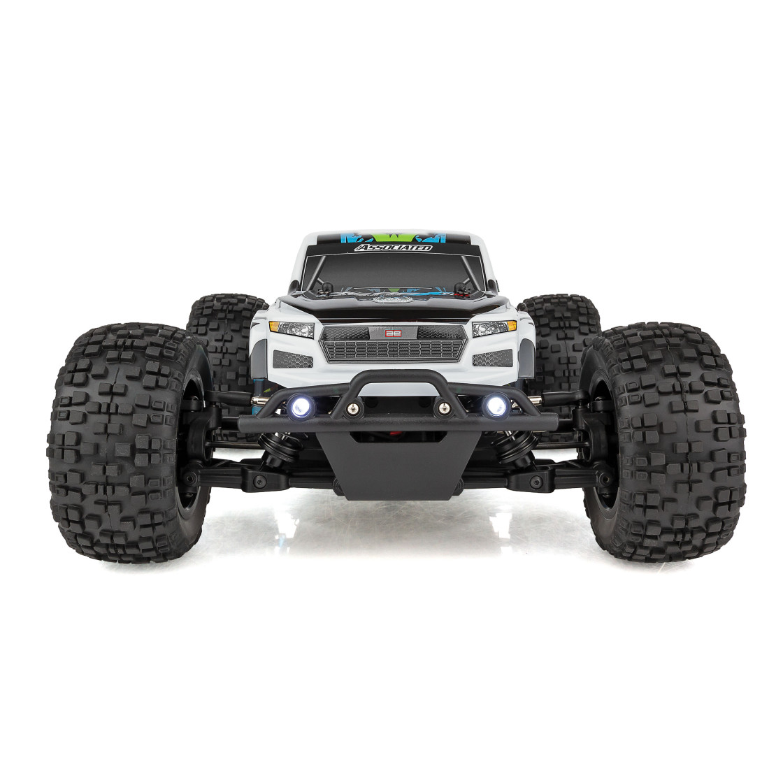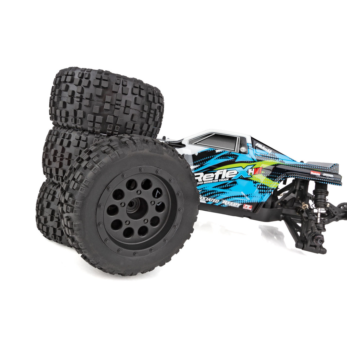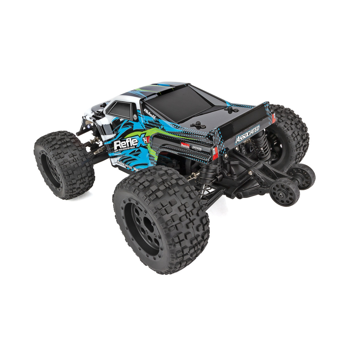 Der Reflex 14MT 4WD Elektro-Monstertruck im Maßstab 1:14 von Team Associated kommt fertig montiert und fahrbereit aus der Verpackung! Es verfügt über eine Reedy Power bürstenlose Drehzahlregler und Motor, High-Torque-digitalen Lenkservo, und 2,4-GHz-Fernsteuerung. Bei all dieser Leistung, die dir zur Verfügung steht, weißt du, dass dieser Monstertruck mit Blick auf die Leistung entwickelt wurde. Die Vielseitigkeit, der All-Terrain-Reifen, die verstellbare Wheelie-Bar, die Spurstangen mit Rechts/Links Gewinde, die Nachlaufblöcke und die Hinterenradträger bieten, machen den Reflex 14MT bereit für jedes Gelände, das du ihm zumutest.